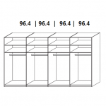 - 2 x 96.4cm internal compartments (200cm wardrobe) / 4 x internal compartments (72.3/47.5/47.5/72.3 cm) (250cm wardrobe) / 4 x internal compartments (72.3 cm) (300cm wardrobe) / 4 x internal compartments (72.3/96.4/96.4/72.3 cm) (350cm wardrobe) / 4 x internal compartments (96.4 cm) (400cm wardrobe)